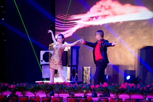 文藝演出在舞蹈《金猴鬧春》中拉開了帷幕,表演者把美猴王孫悟空的形象塑造得惟妙惟肖,帶給觀眾猴年新春祝福。魔術(shù)《魔幻世界》、京劇《變臉》、山東快書、李玉剛反串等節(jié)目無不令現(xiàn)場(chǎng)觀眾拍手叫好。舞蹈《綻放》《sugarfree》以優(yōu)美的舞姿、嫻熟的配合跳出了年輕人的活力與激情。歌曲《喜事多》《越來越好》《相親相愛一家人》通過優(yōu)美的旋律,唱出了經(jīng)典人的心聲。來自本山傳媒公司的東北二人轉(zhuǎn)小沈龍團(tuán)隊(duì)的精彩表演成為演出的一大亮點(diǎn),他們通過夸張、幽默、生動(dòng)的表演,贏得了臺(tái)下一陣陣喝彩聲,特別是小沈龍的臺(tái)上臺(tái)下互動(dòng),把歡聲笑語和新年祝福帶給了現(xiàn)場(chǎng)觀眾,將整臺(tái)演出推向了高潮。
