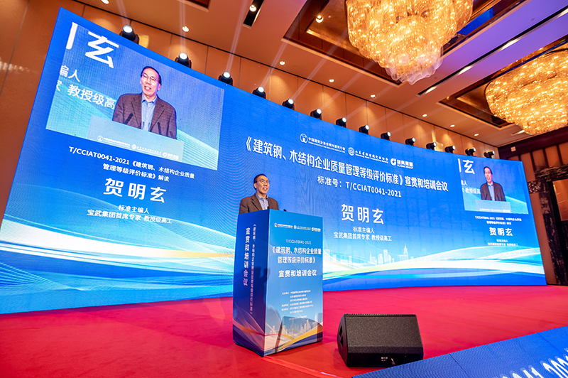 寶武集團首席專家、教授級高工賀明玄作為第一主編,從推進鋼結構產(chǎn)業(yè)高質量發(fā)展的角度,解讀了《建筑鋼、木結構企業(yè)質量管理等級評價標準》。