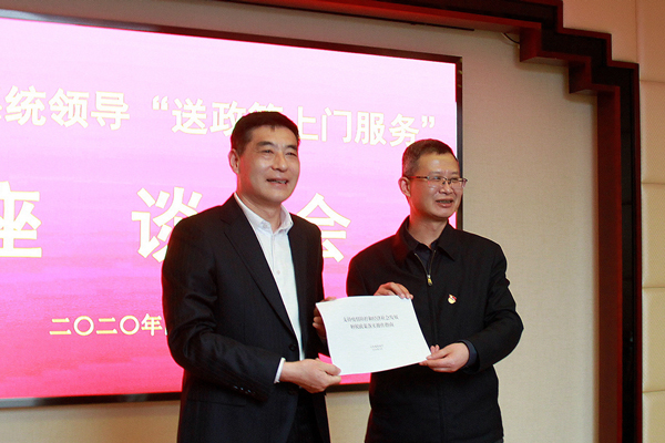 4月15日,山東省稅務局黨委委員、總審計師譚中偉帶領省財政稅務領導專家一行四人在濟寧市稅務局局長張玉良的陪同下送惠企政策、送服務到經典集團。兗州區常務副區長屈耀武,區稅務局局長楊中革,區財政局局長王天祥,經典集團董事長苗樹文,總經理杜福生等參加活動。