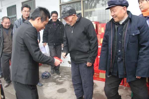 此次活動,柳溝村收到慰問府藏孔府家酒650箱,總價值39萬余元,受到老人們的歡迎。公司負責人還親自把600元慰問金分別送到9戶特困老人手中,表達對他們的慰問之情。老人們對經典集團的慰問表示真誠感謝,并祝愿經典事業在2015年取得更大成績。
