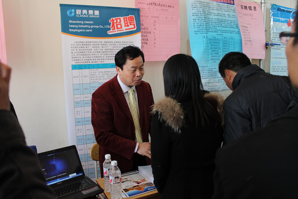 3月20日,經(jīng)典集團(tuán)組織參加青島理工大學(xué)2013年春季畢業(yè)生雙選會(huì)。我公司董事長苗樹文,總經(jīng)理杜福生等領(lǐng)導(dǎo)一同參加了此次雙選會(huì)。在雙選會(huì)現(xiàn)場與畢業(yè)生面對(duì)面進(jìn)行親切交流,對(duì)于企業(yè)和畢業(yè)生來說,是一次很好的雙選機(jī)會(huì),更是一場供需見面的盛宴。見面會(huì)現(xiàn)場人潮涌動(dòng),異常火爆,畢業(yè)生與用人單位進(jìn)行積極交流、雙向選擇,成效十分顯著。