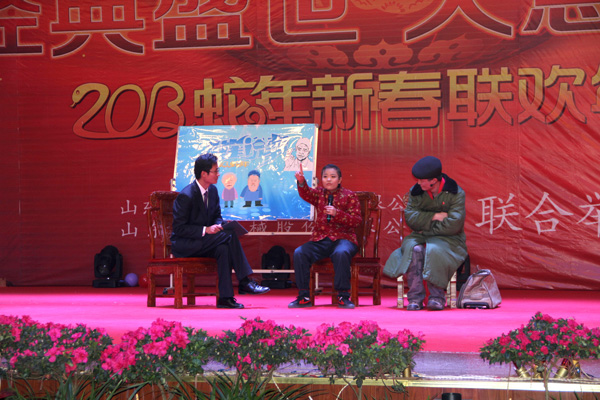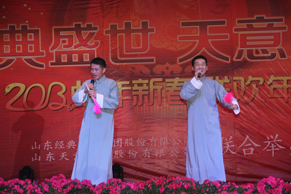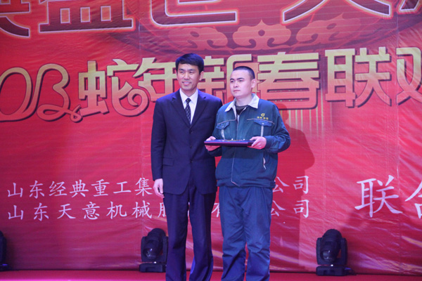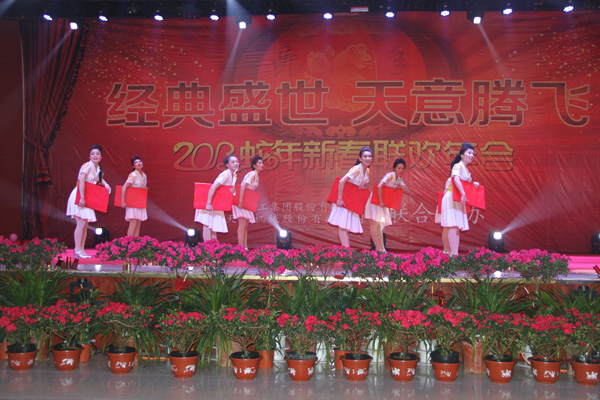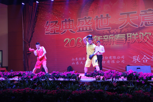 新春年會在激揚的音樂聲中拉開帷幕,全體家人盛裝出席,走過紅地毯,主持人生動的開場白把大家帶入了歡樂的海洋。傾情演唱的歌手、熱血沸騰的旋律、積極互動的觀眾、一次又一次把聯歡年會的氣氛推向高潮。開場舞《和諧中國》,異國風情舞蹈《青花瓷》,別出心裁的小品《拳王爭霸賽》、《白云、黑土后傳》等等,盛情展現了經典員工的多才多藝和敢于挑戰的熱情;聲情并茂的相聲、經典說唱、小品等等引來陣陣歡笑聲;《經典之歌—讓愛傳承》更是唱出了每位員工的心聲。全部節目均由大家自編自演,年會的精彩演出和演出效果真實的展現了全公司員工的團結力量和熱血激情,贏得了到場觀眾的熱烈掌聲。