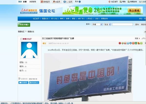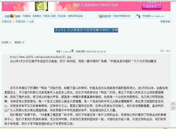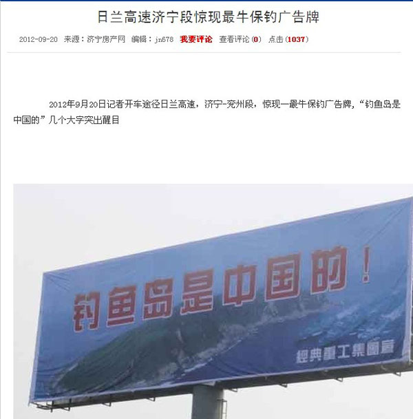 近一段時(shí)期以來(lái)日本推出了所謂的“購(gòu)島”無(wú)恥行徑,刺激了國(guó)人的神經(jīng),我們集團(tuán)作為中華民族大家庭的一員,有責(zé)任也有義務(wù)保衛(wèi)我們祖國(guó)領(lǐng)土的完整,和不容侵犯,為此集團(tuán)領(lǐng)導(dǎo)代表集團(tuán)全體員工通過(guò)各種方式彰示了我們的愛(ài)國(guó)熱情,并付諸于實(shí)際行動(dòng)斥巨資在日蘭高速濟(jì)寧段制作了高炮廣告“釣魚(yú)島是中國(guó)的”以顯示我們保釣之決心。