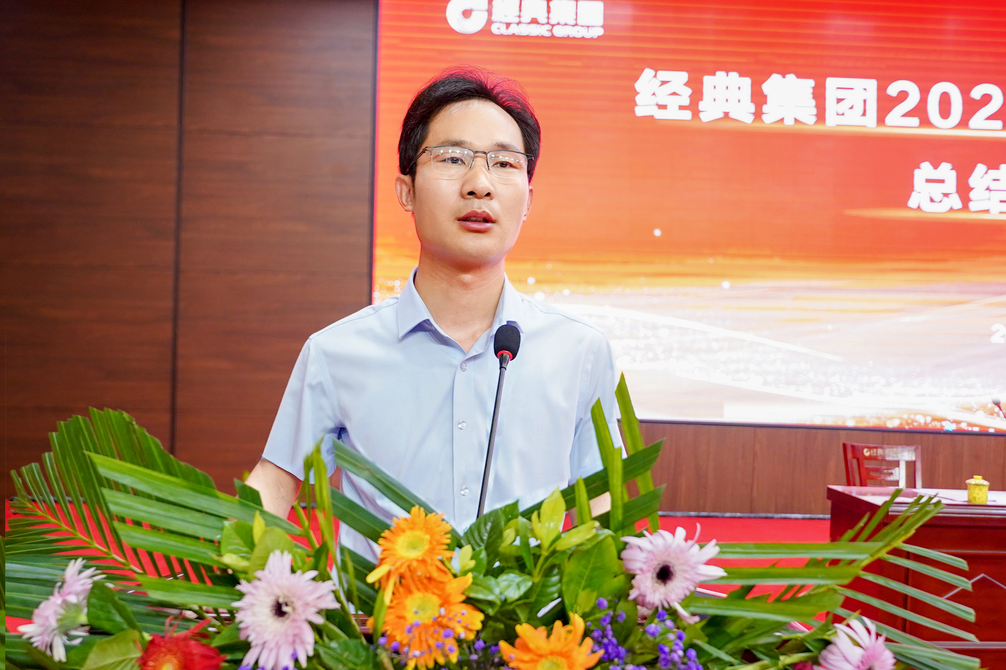 集團董事長史振華作重要講話,經典控股總經理高建國宣讀了表彰決定,集團副總經理兼生產總監張琦總結上半年工作完成情況,對下半年工作做了統籌安排,集團副總經理侯士輝主持大會。