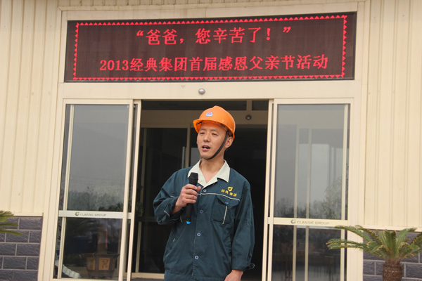 2013616日上午730分,經典集團開展2013年度父親節“送溫暖,獻愛心”活動,為集團全體員工的父親送上愛心手機,千元節日紅包,集團董事長苗樹文,總經理杜福生及高層領導先后致辭并發放獎金及手機。活動舉行完后,經典集團總經理杜福生親自到部分員工家中為員工父親送上集團的問候與節日祝福。